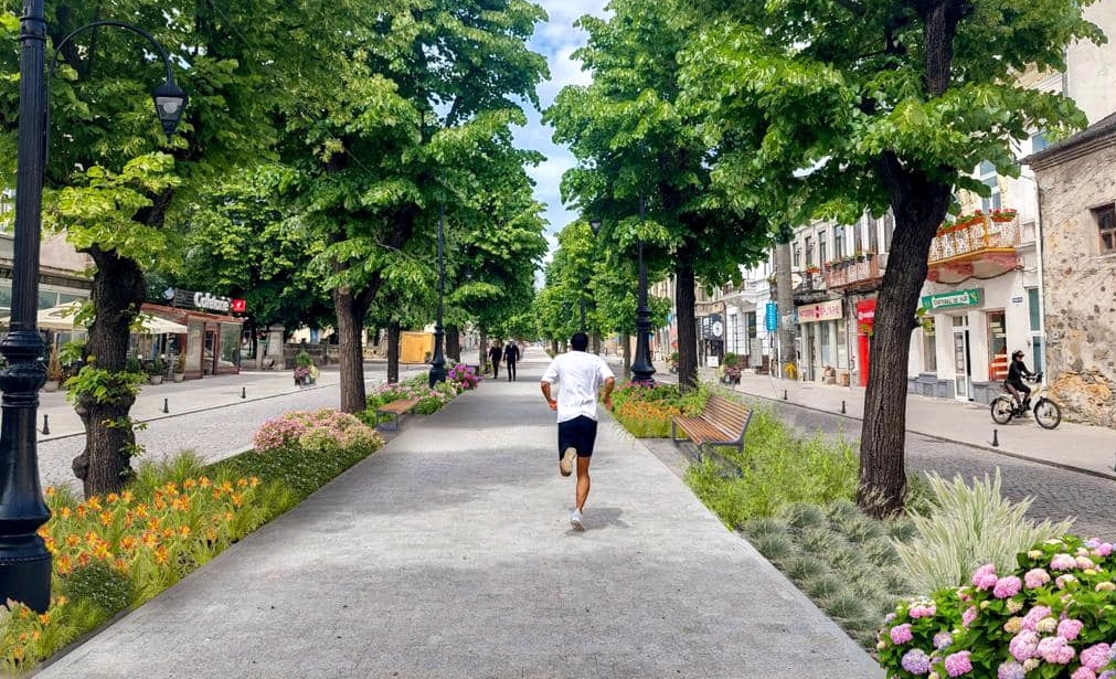 Vă reamintesc că proiectul pe care l-am moștenit nu avea nici mobilier urban (bănci, jardiniere, stâlpișori pietonali, coșuri de gunoi), iar zona verde pur și simplu nu exista.